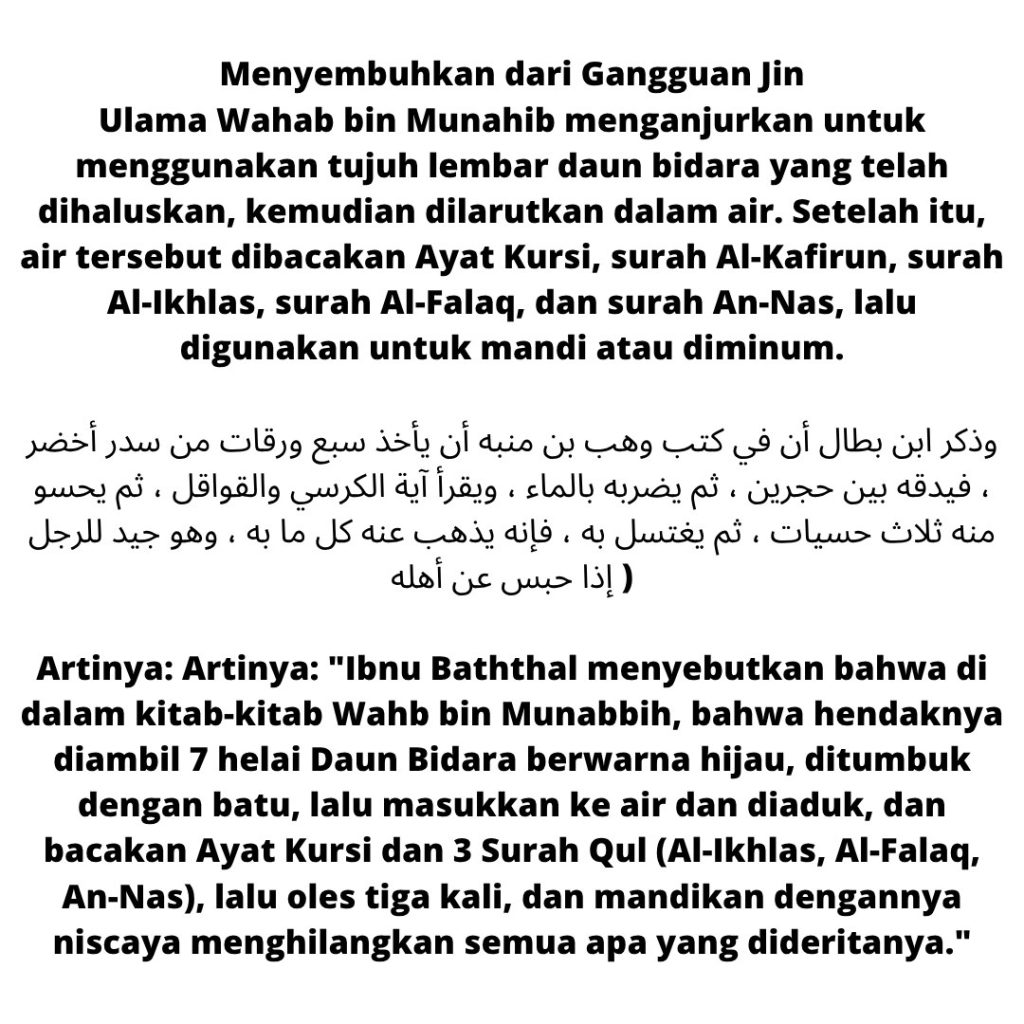 Sebagai ikhtiar, bidara disebut dalam hadis untuk rawatan sihir. Namun, kena gabung dengan niat & doa